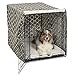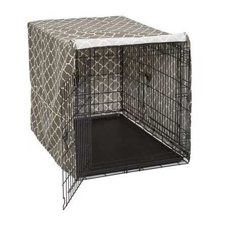 - Teflon protected dog crate cover provides the privacy, security & comfort that dog's instinctually need & desire as recommended by Veterinarians, Breeders & Trainers. Crate cover fits most 1 & 2 door folding metal dog crates 42" L, brown geo pattern