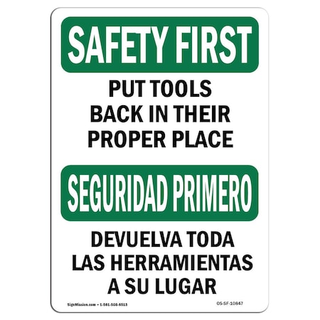 OSHA Safety First Sign - Put Tools Back in Their Proper Place | Vinyl Label Decal | Protect Your Business, Work Site, Warehouse & Shop Area | Made in The USA