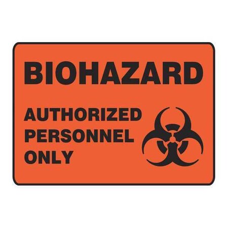 Accuform MBHZ501VA Aluminum Safety Sign, Legend "Biohazard Authorized Personnel ONLY" with Graphic, 7" Length x 10" Width, Black on Orange-Red