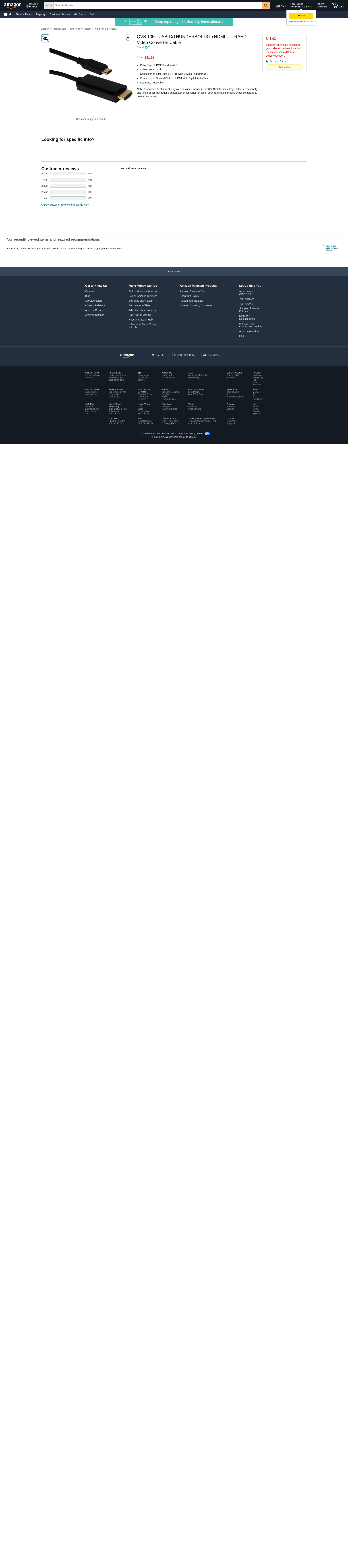 QVS 10FT USB-C/THUNDERBOLT3 to HDMI ULTRAHD Video Converter Cable