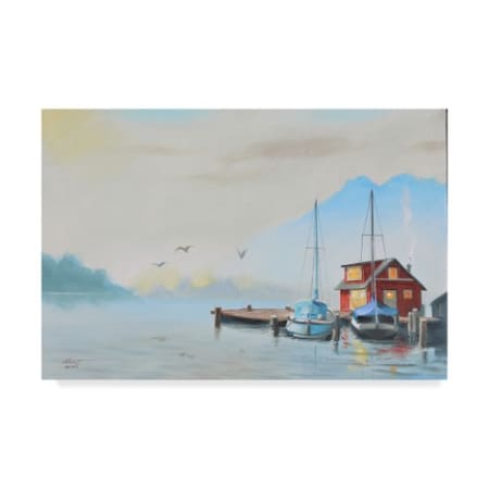 <ul> <li>Artist: D Rusty Rust</li> <li>Subject: Landscape</li> <li>Style: Coastal</li> <li>Product Type: Gallery-Wrapped Canvas Art</li> </ul> <p>This ready to hang, gallery-wrapped art piece features a dock house on the right side of the frame.</p> <p>Prominent Colors: White, Turquoise, Light Blue, Blue, Grey, Tan</p> <p>Erie, Pennsylvania, native D.L. Rusty Rust is an artist with a repertoire as extensive as his talent. An immensely prolific painter, Rust adeptly renders intriguing camouflage wildlife scenes, landscapes, seascapes, still lifes and portraits. His work is part of many prestigious collections, including Smithsonian's National Portrait Gallery, the Ringling Museum of the Circus, and the Norman Rockwell Museum in Philadelphia.</p> <p>Giclee (jee-clay) is an advanced printmaking process for creating high quality fine art reproductions. The attainable excellence that Giclee printmaking affords makes the reproduction virtually indistinguishable from the original piece. The result is wide acceptance of Giclee by galleries, museums, and private collectors. Gallery wrap is a method of stretching an artist's canvas so that the canvas wraps around the sides and is secured a hidden, wooden frame. This method of stretching and preparing a canvas allows for a frameless presentation of the finished painting.</p>