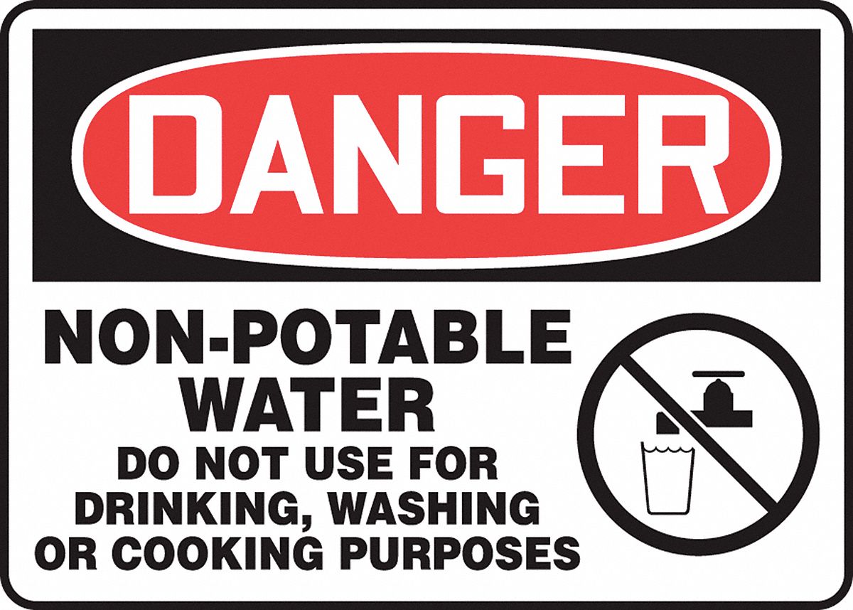 <BR>Chemical & Hazardous Material Safety Signs. DANGER NON-POTABLE WATER DO NOT USE FOR DRINKING, WASHING OR COOKING PURPOSES (W/GRAPHIC). 10" x 14" Adhesive Vinyl Sign<BR>