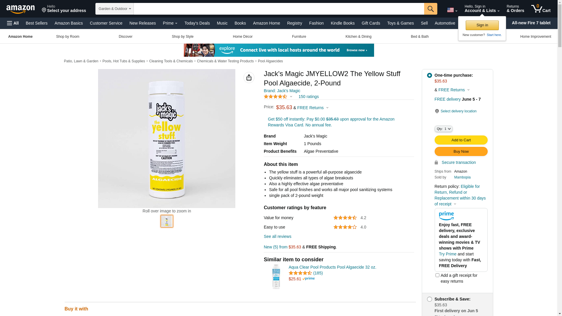 Jack's Magic JMYELLOW2 The Yellow Stuff Pool Algaecide, 2-Pound