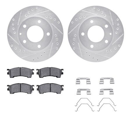 7512-80142, Rotors-Drilled and Slotted-Silver w/ 5000 Advanced Brake Pads incl. Hardware, Zinc Coat