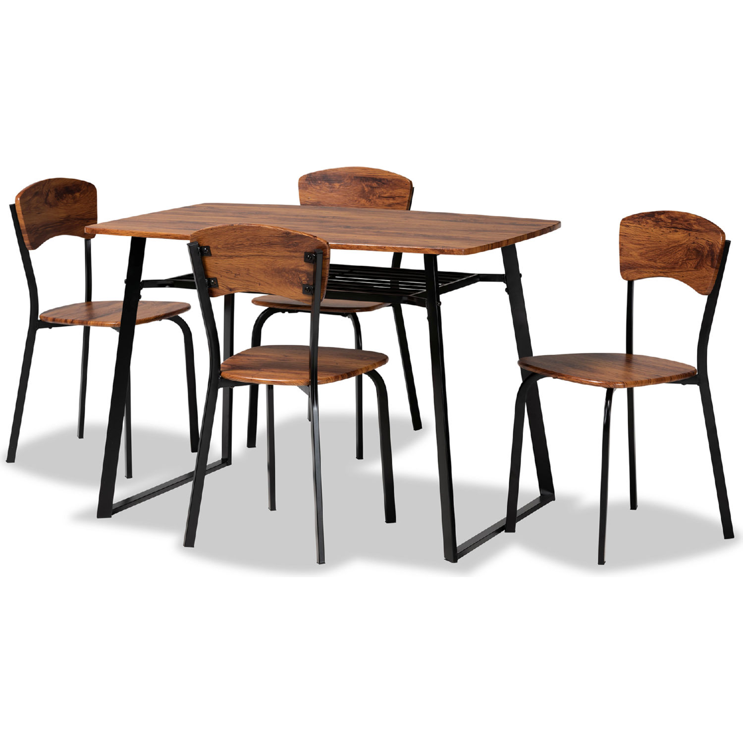 Baxton D01325-5PC Dining Set Elida 5 Piece Dining Set Walnut Brown Finish Wood & Black Metal