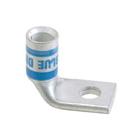 Panduit LCAS4-10F-L Code Conductor Lug, One Hole, Short Barrel With Window, 90 Degree Angle, #4 AWG Copper Conductor Size, #10 Stud Hole Size, Gray Color Code, 0.09" Tongue Thickness, 0.55" Tongue Width, 0.53" Neck Length, 1.03" Overall Length