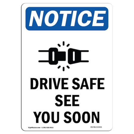 OSHA Notice Sign, Drive Safe See You Soon With Symbol, 10in X 7in Rigid Plastic