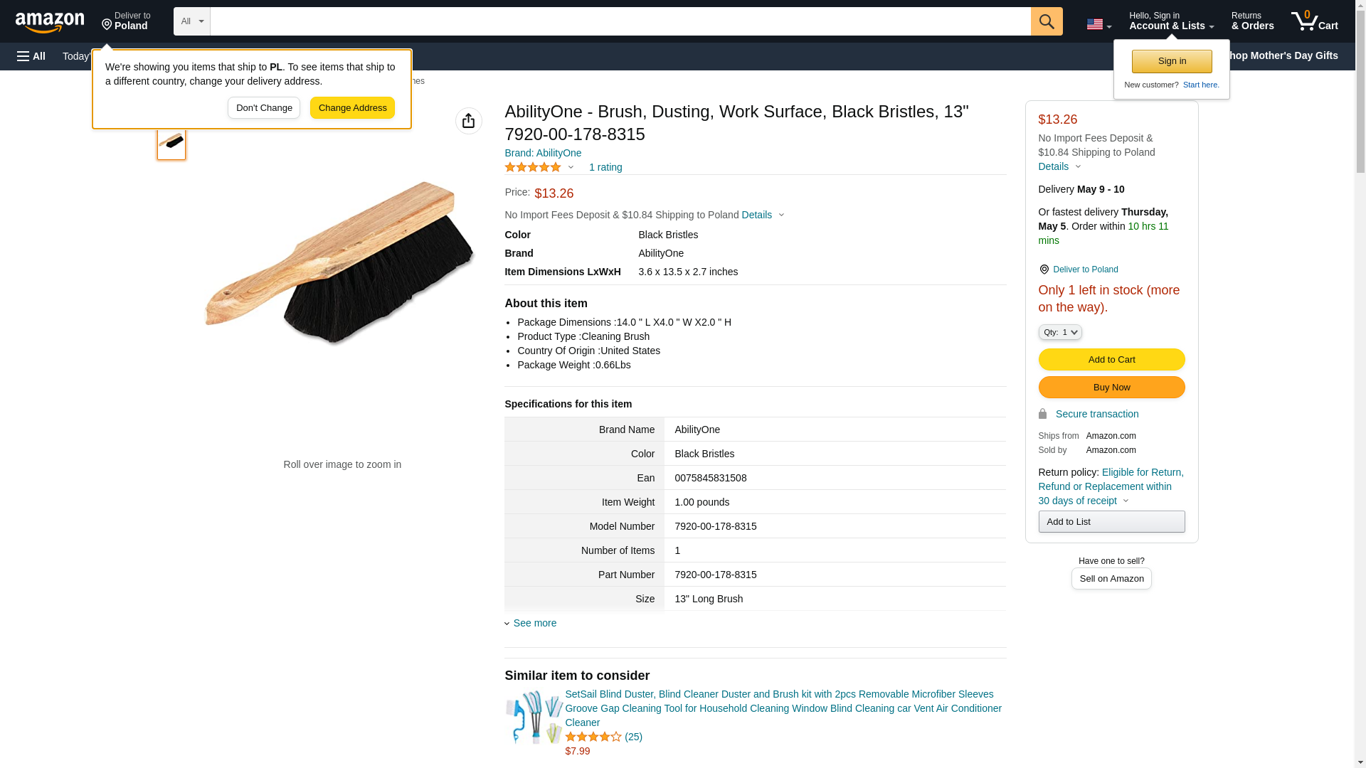 7920001788315, Skilcraft Counter Dusting Brush, Black Horsehair/Polystyrene/Tampico Bristles, 13"Brush, 13"Tan Wood Handle