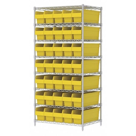 Akro-Mils AWS243630864Y Wire Shelving Kit with 40 Bins, 24" x 36" x 74", Chrome/Yellow