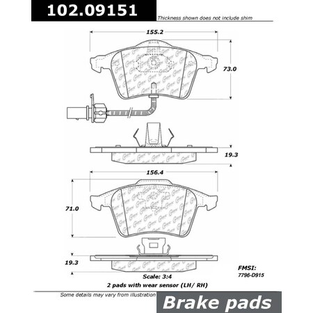 Centric Parts 102.09151 102 Series Semi Metallic Standard Brake Pad