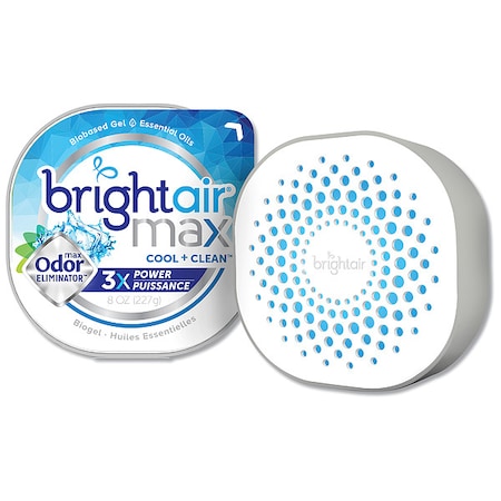 Bright Air Max Scented Gel Odor Eliminator - Gel - 8 oz - Cool Clean - 1 Each - Odor Neutralizer, Phthalate-Free, Paraben-Free, BHT Free, Bio-Based, Formaldehyde-Free, NPE-Free