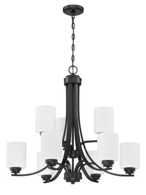 Craftmade 50529-FB-WG Bolden White Frost Glass Shade Chandelier, 9-Light 540 Watts, Flat Black