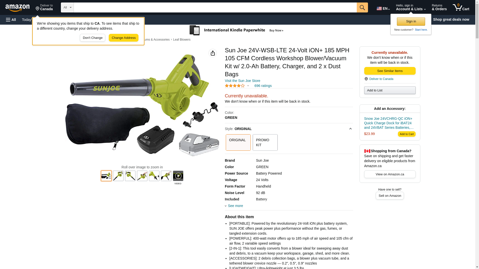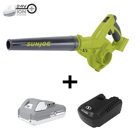 Sun Joe 24-Volt iON+ 185 MPH 105 CFM Cordless Handheld Blower and Vacuum (1 x 2.0Ah Battery and 1 Charger) Green 24V-WSB-LTE - Best Buy