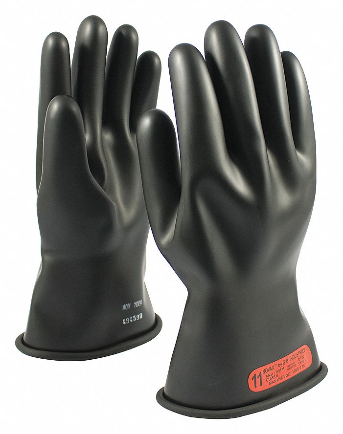INSULATING GLOVES, 2 TONE, CLASS 0, MAX USE 1000 V, SIZE 8, BLACK/ORANGE, 11 IN, RUBBER