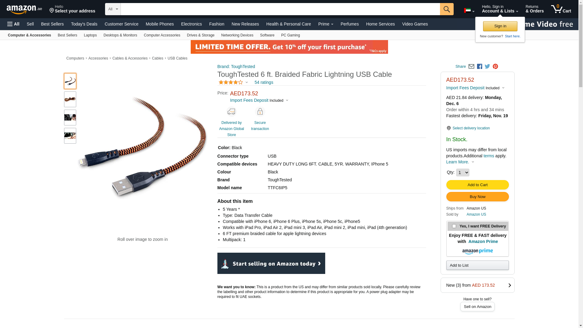 Mizco International 6FT. Braided Fabric Cable Apple Lighting USB Cable TT-FC6-IP5