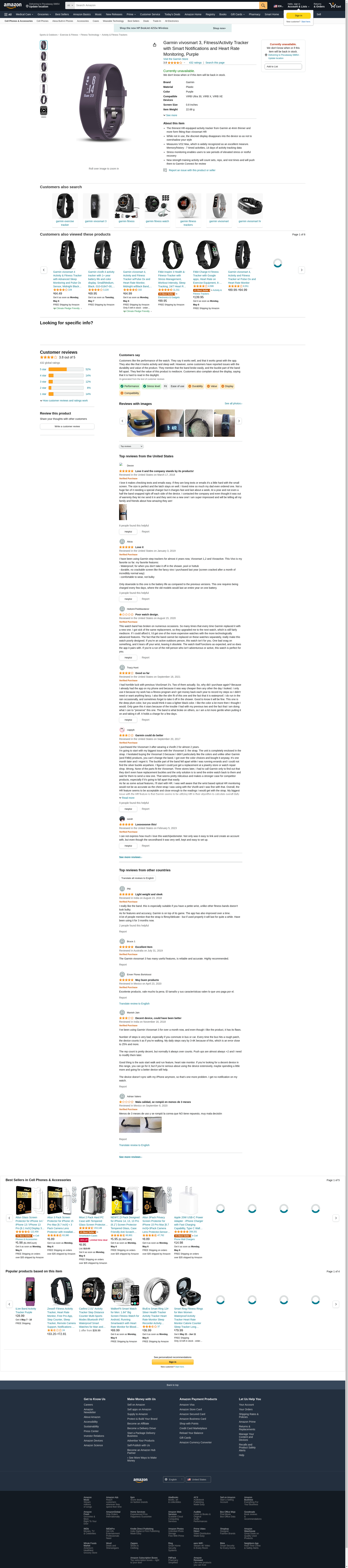 Garmin vívosmart 3, Fitness/Activity Tracker with Smart Notifications and Heart Rate Monitoring, Purple