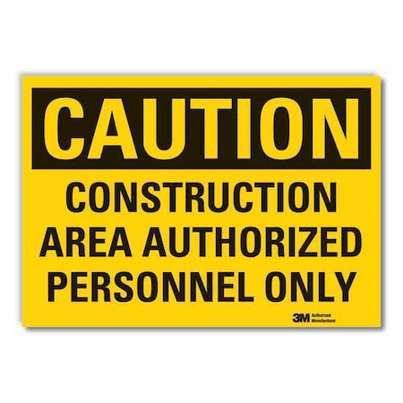 Caution Sign, Vertical Rectangle, Number of Printed Sides 1, English, Sign Format Traditional OSHA, Sign Legend Construction Area Authorized Personnel Only, Sign Legend Background Color Yellow, Sign Legend Style Text