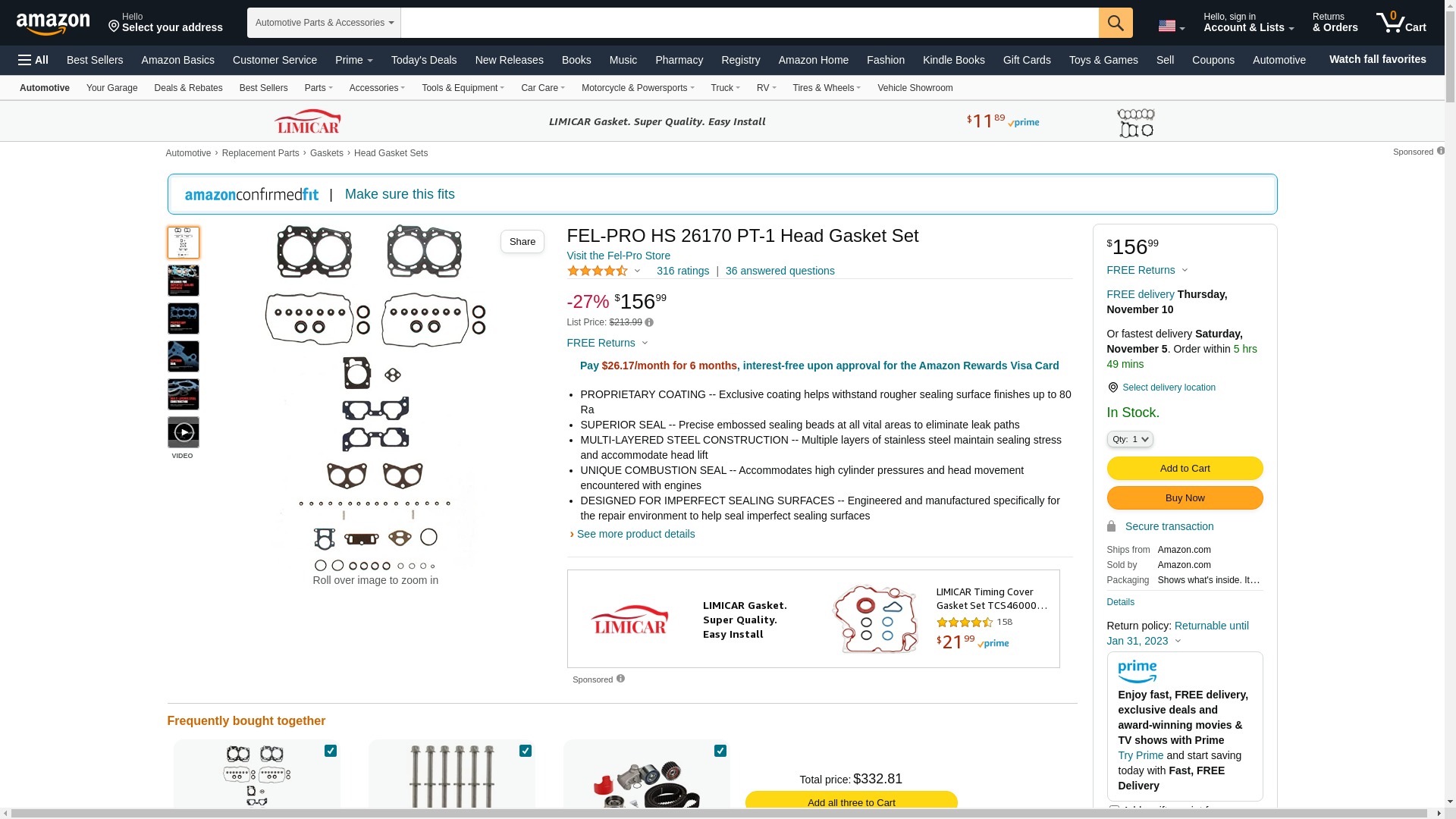 ![]() StockWise Auto | FEL-HS26170PT1 | 1 | 1 | 1 @ $155.13 |