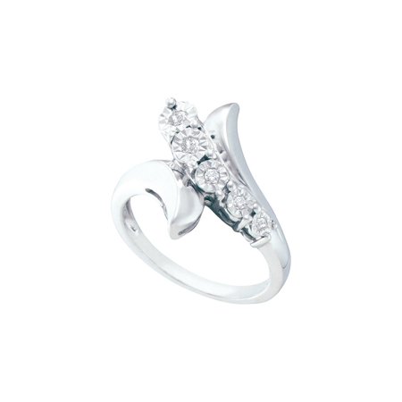 <p><span style="font-size:16px;"><b><u>Description</u></b><br /></span></p> <p><span style="font-size: 14px;">Sterling Silver Womens Round Diamond Band Ring 1/10 Cttw</span></p> <br /> <p><span style="font-size:16px"><u><b>Gemstone Details</b></u></span></p> <p><span style="font-size:14px">1/10 Carats total weight --- 1/10 carat center solitaire<br /><br />All diamonds are natural and conflict-free in origin<br /><br /><b>Round Diamond</b><br /></span></p> <li>1/10 ct.t.w.</li> <li>I3 clarity</li> <li>J-K color</li> <li>Illusion setting<br /><p><span style="font-size:16px"><u><b>Specifications</b></u><br /></span></p><p><span style="font-size:14px">Sterling Silver<br />3.87 grams (approximately)<br />Ring size selectable</span></p><p><span style="font-size:11px">Combined diamond weight of 1/10 carats total weight represents a range of 0.09 - 0.11 cts. t.w.</span></p></li>