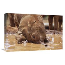 Global Gallery GCS-452955-1624-142 16 x 24 in. Orphaned Baby Isholta Playing in Mud Bath, Tsavo East NP, Kenya A