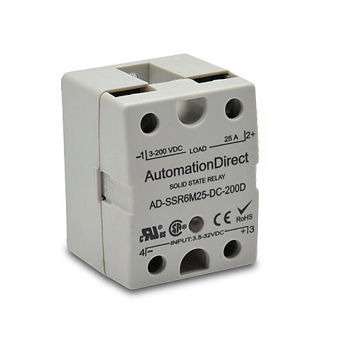 AD-SSR6M25-DC-200D - AutomationDirect solid state relay, panel mount, finger-safe hockey puck, 3-32 VDC input voltage, SPST, (1) N.O. MOSFET, 25A contact...