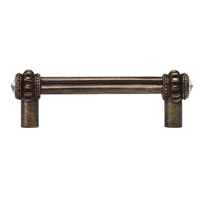 Quick Ship Cache Collection - 3" Centers Double Pull with Swarovski Elements in Antique Brass with Crystal by Carpe Diem Hardware - QS-861-3C | Knobs 4 Less