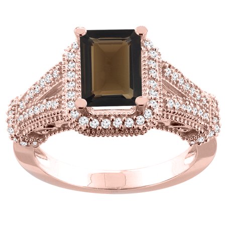 Naturally-vibrant superior color gemstone|High Quality Genuine Diamond Accents|10K Solid Gold|Made in the USA|Exclusive design of PIERA for Gabriella Gold|Diamond smoky topaz rings, emerald-cut smoky topaz rings, |Emerald-cut engagament rings|Birthstones, birth stone rings|Color gemstone rings|Gemstone gold engagement rings