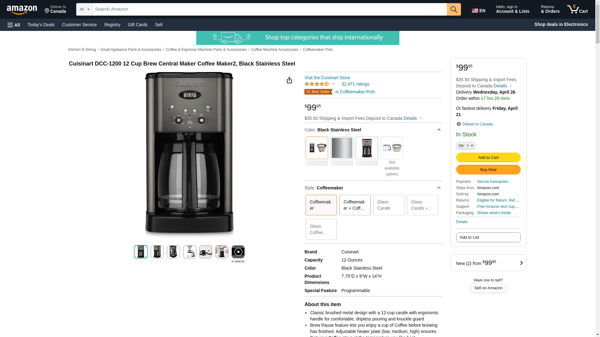 | Feature | Classic brushed metal in new Black Stainless steel design with a 12-cup carafe with ergonomic handle for comfortable, dripless pouring |