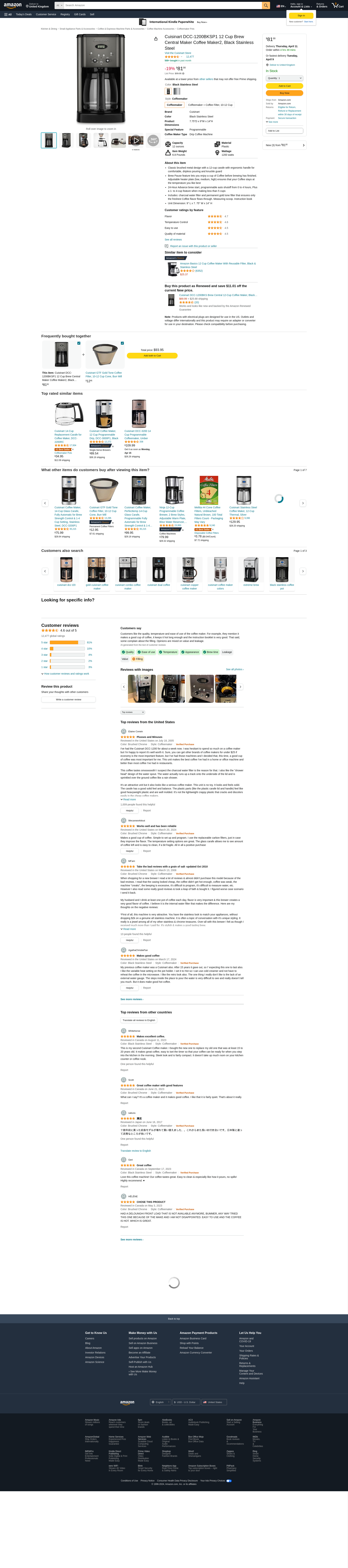 Cuisinart DCC-1200BKSP1 12 Cup Brew Central Maker Coffee Maker2, Black Stainless Steel