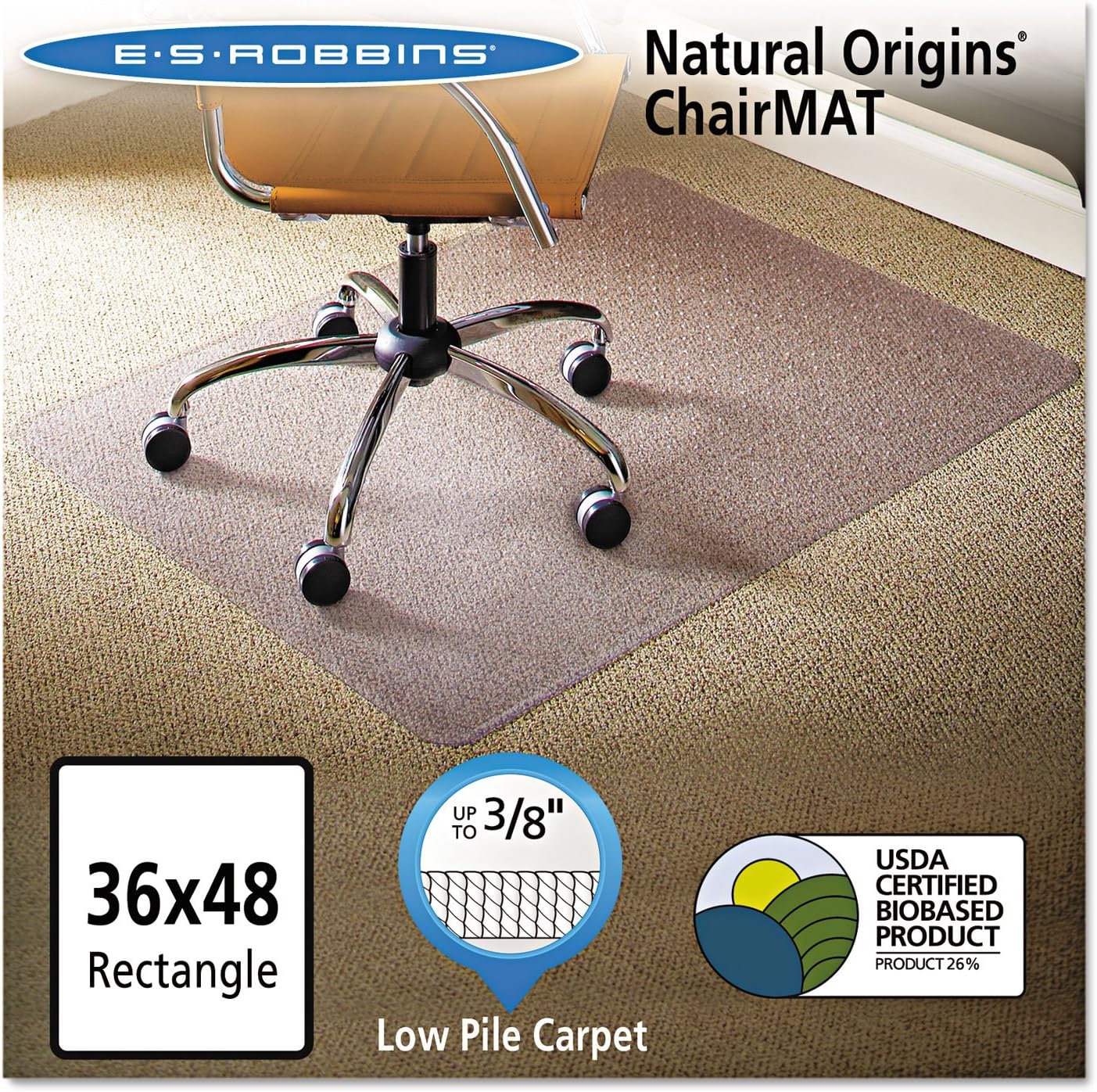 ES Robbins 141028 Natural Origins Chair Mat for Carpet, 36 x 48, Clear