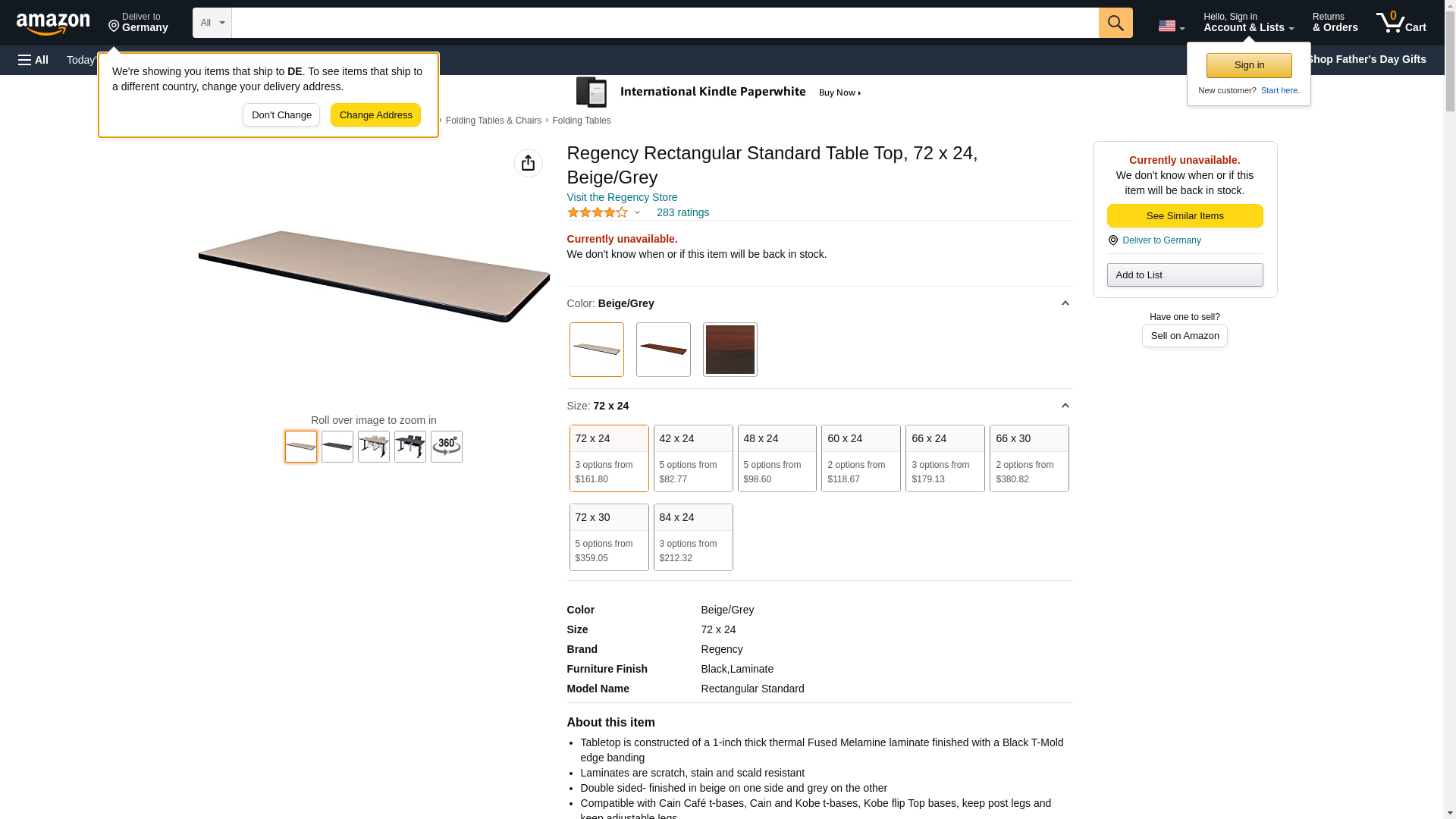 Regency Rectangular Standard Table Top, 72 x 24, Beige/Grey