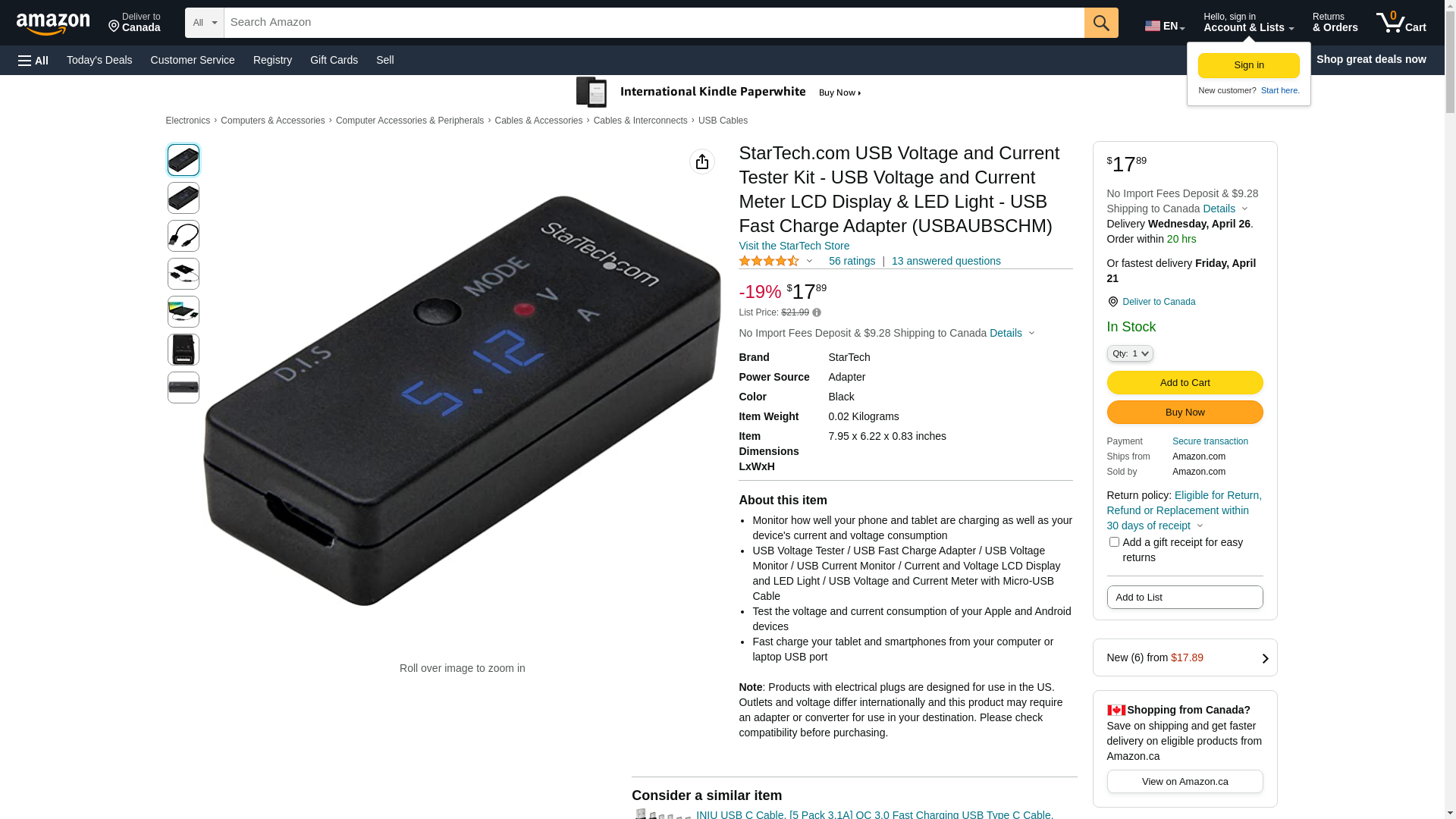 StarTech.com USB Voltage and Current Tester Kit - USB Voltage and Current Meter LCD Display & LED Light - USB Fast Charge Adapter (USBAUBSCHM) - USB voltage and current meter - USB Type A | Grand & Toy
