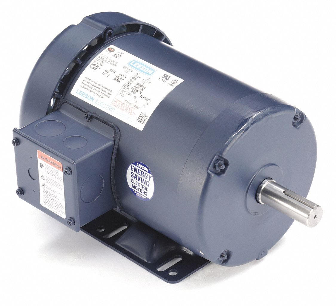 Leeson 121096.00 Special Voltage Motor, 3 Phase, 143T Frame, Rigid Mounting, 1HP, 1500 RPM, 220/380/440V Voltage, 50Hz Fequency
