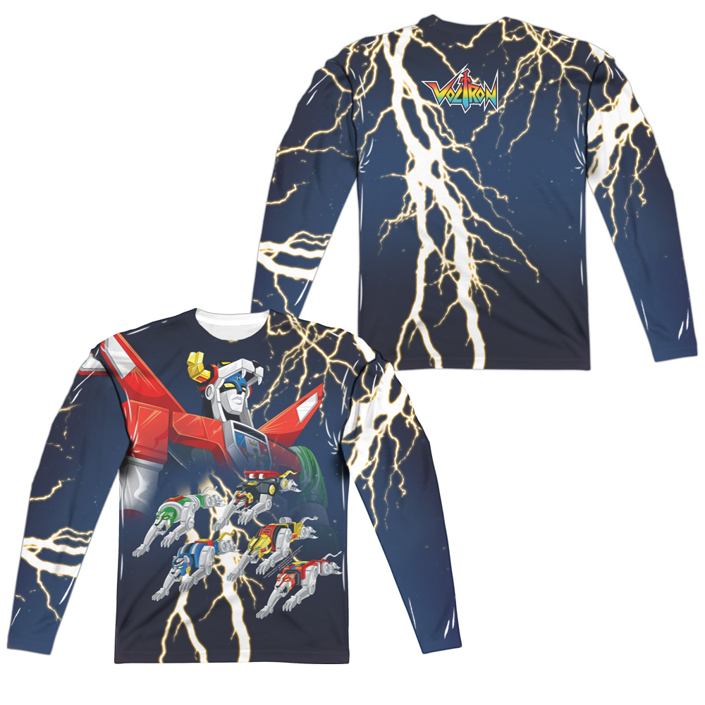 Trevco DRM248FB-ALPP-2 Voltron & Boltron Front & Back Print Adult Polyster Crew Neck Long Sleeve T-Shirt, White - Me