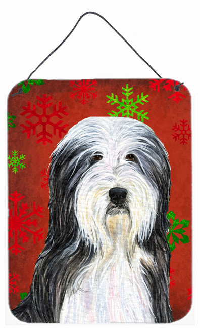 Carolines Treasures SS4704DS1216 Bearded Collie Red Snowflakes Holiday Christmas Aluminium Metal Wall Or Door Hanging Pr