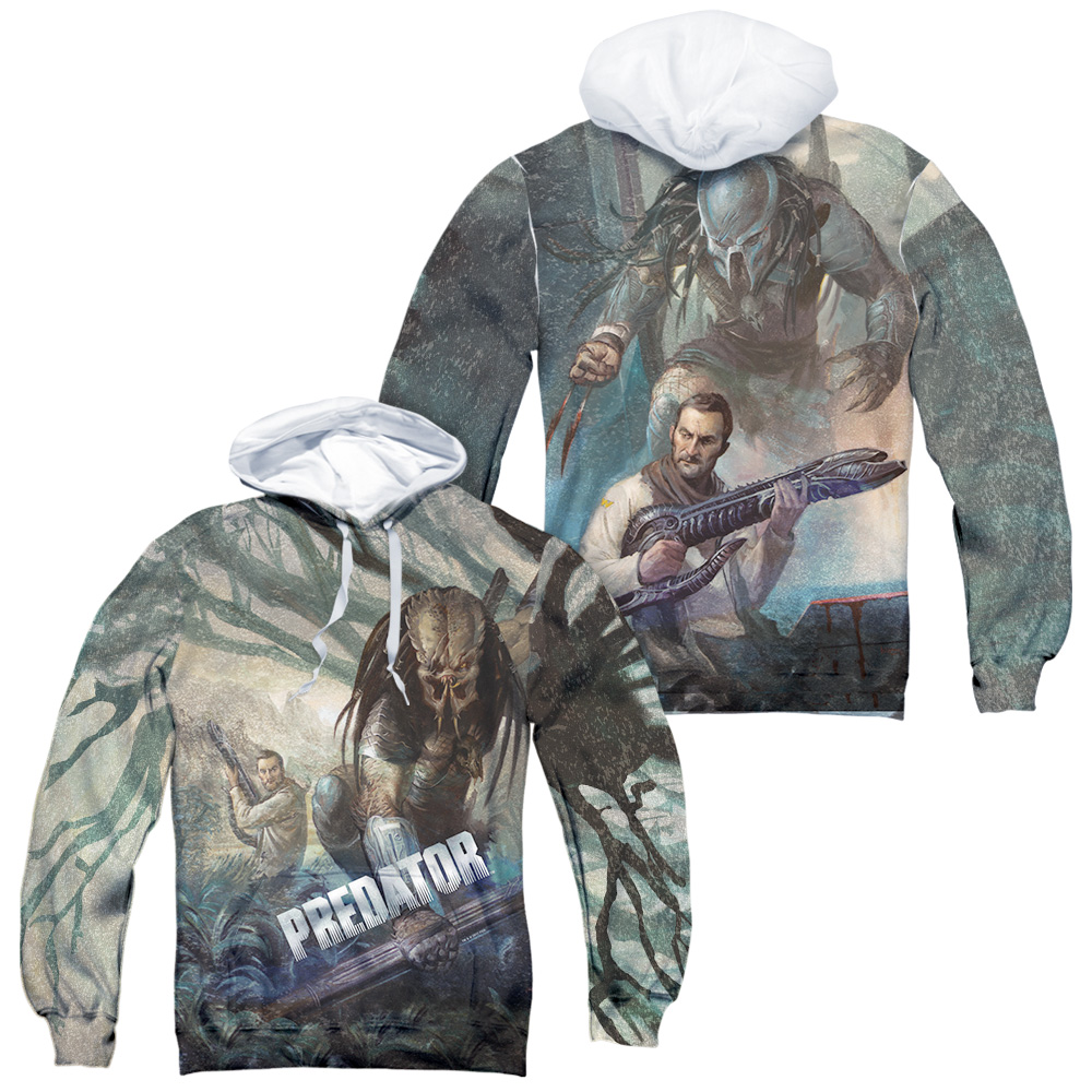 Trevco TCF607FB-AHPP-4 Predator & Stalk Front & Back Print Adult Polyster Pullover Hoodie, White - Extra Large