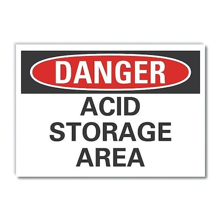 Acid Danger Reflective Label, Vertical Rectangle, Number of Printed Sides 1, English, Sign Format Traditional OSHA, Sign Legend Acid Storage Area, Sign Legend Background Color White, Sign Legend Style Text