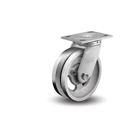 Albion 16VG05201S 5" Diameter V-Grooved Cast Iron Wheel Medium Heavy Duty Swivel Caster, Roller Bearing, 4-1/2" Length x 4" Width Base Plate, 800 lb. Capacity Range