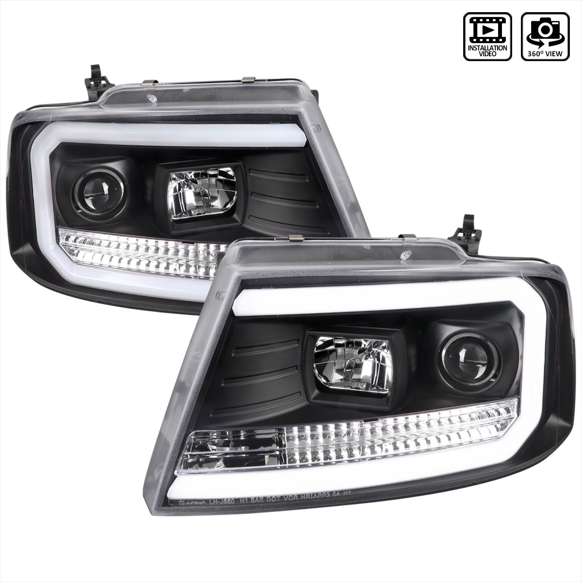FITMENT: Compatible with Ford F150 2004-2008 Models Only (Doesn't Fit 2004 Ford F150 Heritage Models). 2006-2008 Lincoln Mark LT Models Only.DESCRIPTION: Brand new in original packaging. Comes with a pair of high quality black housing clear lens dual halo projector headlights w/ LED strip. H1 bulbs are included for high and low beam lights. WY5W12V light bulbs are Included for turn signal. Made by an ISO certified manufacturer with quality that meets strict OE standards. Professional installation is recommended.