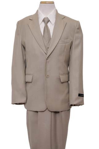 Mens Suits 2 Button Front Closure Interior Pick Stitching Boys Suits Beige - 5