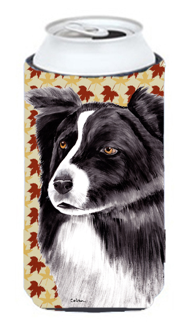 Caroline's Treasures SC9207TBC Border Collie Fall Leaves Portrait Tall Boy Hugger Can Cooler Sleeve Hugger Machine Washable Drink Sleeve Hugger Collapsible Insulator Beverage Insulated Holder