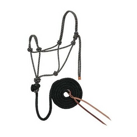 Weaver Leather Diamond Braid Rope Halter and Lead, Black/Tan/White, 1/2" x 10'