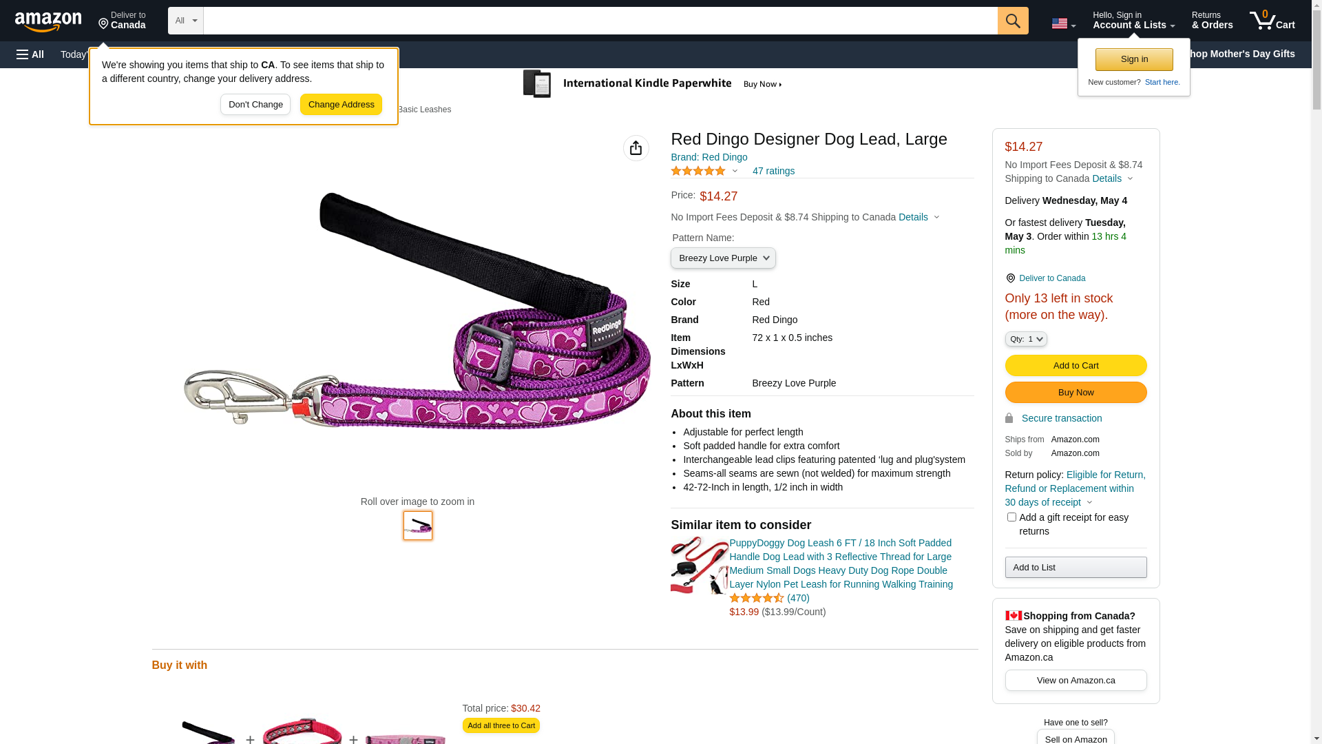 Red Dingo L6-BZ-PU-LG Dog Lead Design Breezy Love Purple, Large