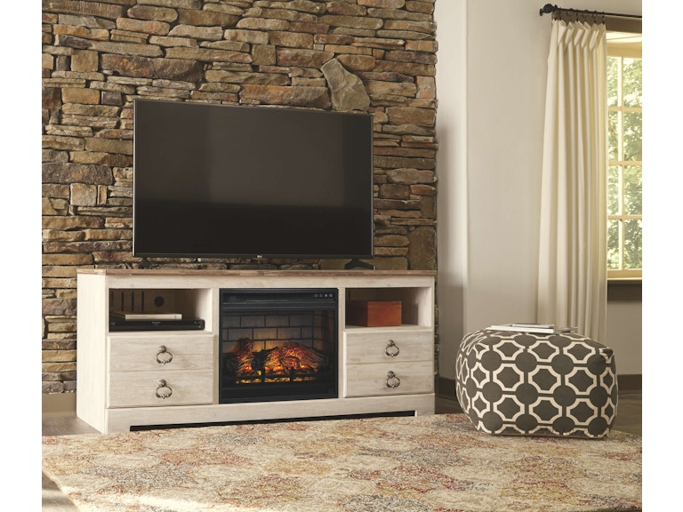 Ashley Willowton 64'' TV Stand with Faux Firebrick Fireplace Insert W267-68-W100-101