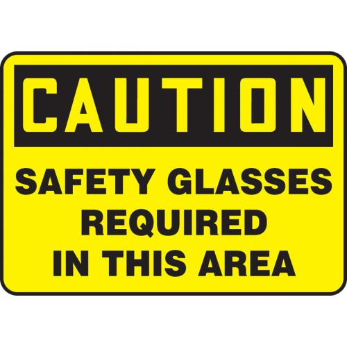 OSHA Caution Safety Sign: Safety Glasses Required In This Area 7" x 10" Aluminum - MPPE794VA - Jendco Safety Supply