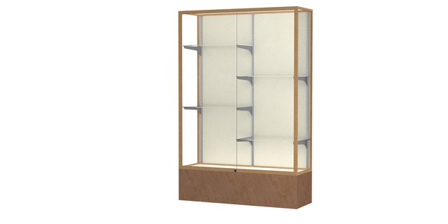 Monarch Series 571 Aluminum Frame Lighted Display Case, Beige Stone Laminate Base, Gold Aluminum Frame, Plaque Fabric Display Back