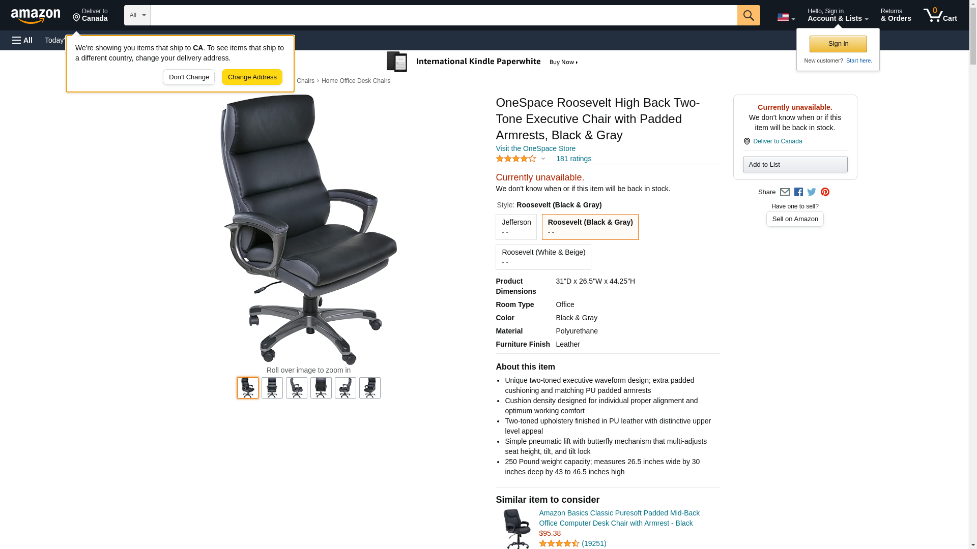 OneSpace Roosevelt High Back Two-Tone Executive Chair with Padded Armrests, Black & Gray