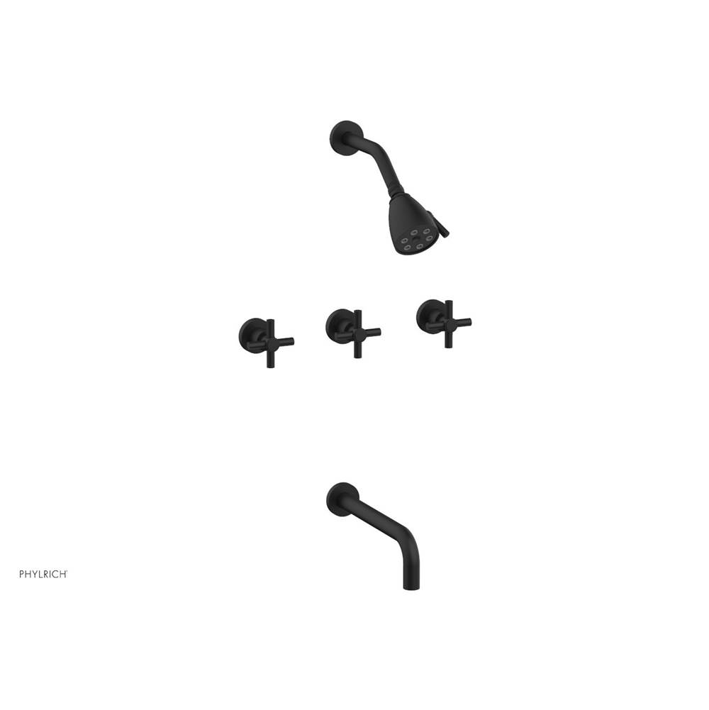 PHYLRICH D2134-10/040 BASIC 10 INCH SPOUT WALL MOUNT TUB AND SHOWER SET WITH THREE TUBULAR CROSS HANDLES, SATIN BLACK