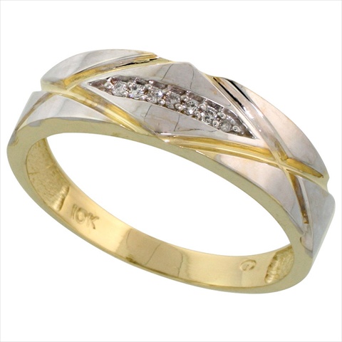 World Jewels 10k Yellow Gold Mens Diamond Wedding Band Ring .04 Kt. Brilliant Cut, .25 inch wide, Size 10