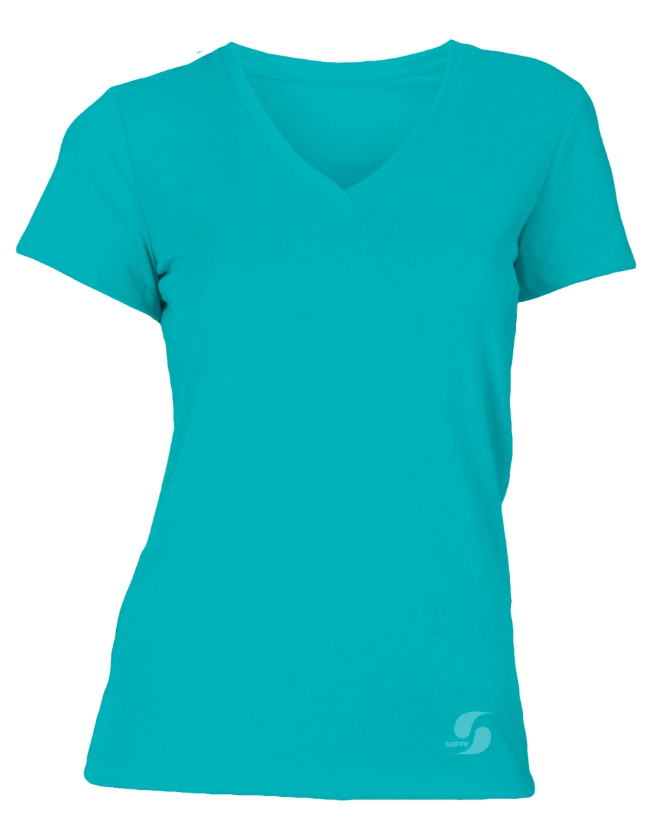 Soffe 6540V485MED Short Sleeve V-Neck Poly Cotton Tee Shirt for Junior, Scuba Blue - Medium